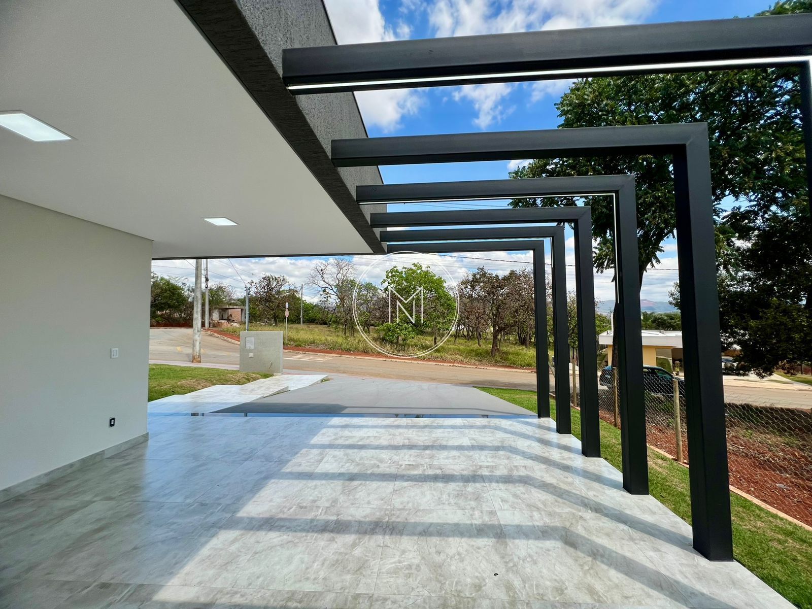 🏡 Localizada em condomínio fechado, a casa possui uma fachada moderna e imponente, com pergolado na garagem e um belo projeto de iluminação que valoriza cada detalhe.